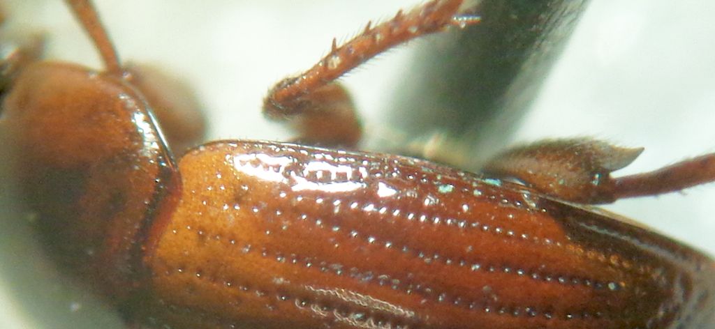 Legit Di Taddeo V. (dtvd). Così l'avrei classificata (= calcaratoides Reitter) per i metatarsomeri molto snelli, subparalleli, dai quali forse il nome specifico: non so però come debba essere colorata. Possiede placca mesosternale con bassa carena, stria omerale obliqua corta, interstrie alterne con pochi grossi punti tra quelli molto fini, strie con grossi punti, ultimo antennomero più piccolo e piatto del precedente, base del protorace sinuosa verso gli angoli posteriori, largamente ottusi. Grazie per ogni parere.