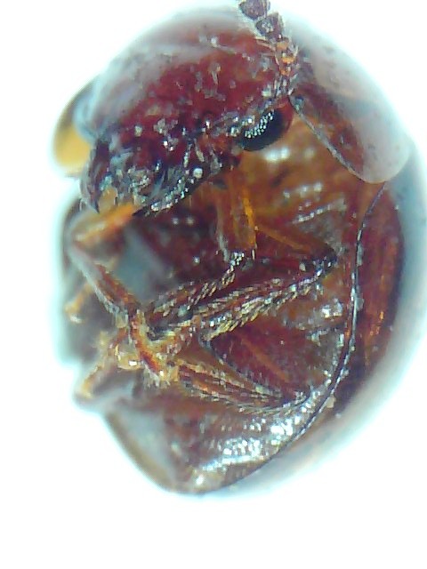 Grazie Giovanni, dalle foto si direbbe che il 3° antennomero sia all'incirca lungo quanto il secondo e che dietro l'occhio non ci sia una tempia accentuata, questo dovrebbe escludere A. nigripenne; la dimensione che hai indicato, circa 2 mm, è un po' vaga... al di sotto dei 2,5 mm (seguendo le chiavi) arriviamo ad un vicolo cieco (A. agliyptoides dovrebbe avere sia nel maschio che nella femmina formula tarsale 4-4-4, mentre dalle ultime foto è evidente che il tarso anteriore consta di 5 articoli)... se la lunghezza dovesse essere invece sui 2,5 mm sarebbe compatibile con la mia prima impressione che possa trattarsi di Agathidium (Neoceble) varians Beck, 1817