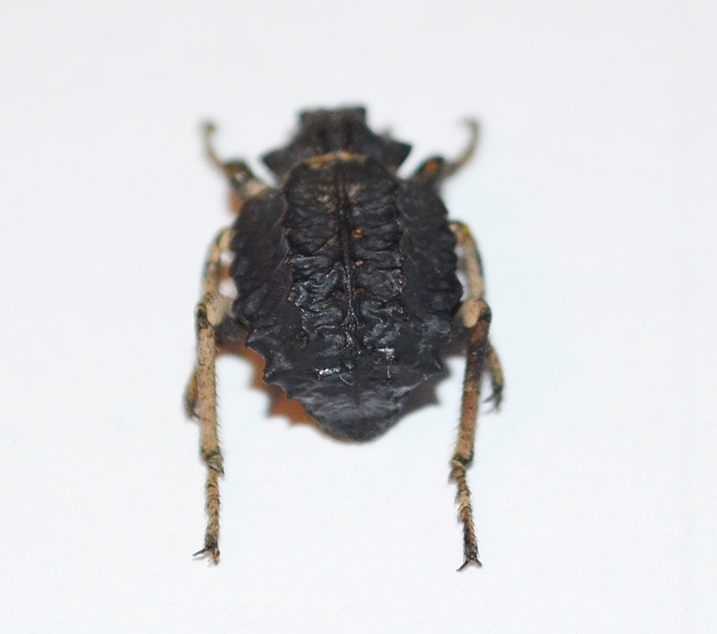 In effetti potrebbe ricordare un Brachycerus undatus (Fabricius, 1798), ma non sono sicuro che appartenga a questa specie, perchè, anche controllando tutti gli undatus della mia collezione, ho conferma che le due carene che corrono vicine tra loro lungo la linea suturale, sono praticamente sempre intere e non presentano interruzioni costituite da "nodi" o "tubercoli", rilevati o piatti che siano. Ecco il motivo perchè avevo escluso questa specie, ma ciò non toglie che potrei essermi abbondantemente sbagliato.