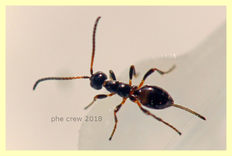 Imenottero parassitoide solo corpo 2,5 mm. anche questo uscito da un foro del legno, parassita di chissà quale larva. 16.2.2018