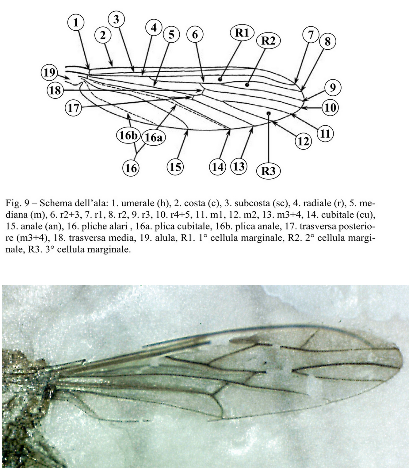 Ho cercato di ricostruire lo schema delle nervature alari dando una mia interpretazione e basandomi su entrambe le ali.