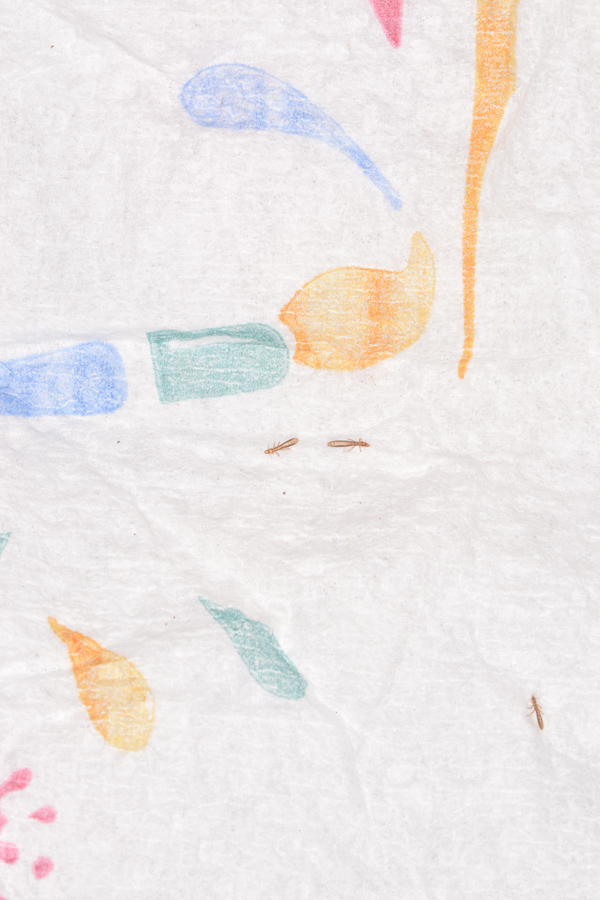 un amico allevatore mi ha regalato dei piccioni non ancora puliti dalle piume. Dopo una notte in frigorifero, quando li ho tolti dal frigorifero per pulirli ho notato sulla carta dove erano appoggiati questi insetti che dovrebbero essere semplici pulci a detta sua.
