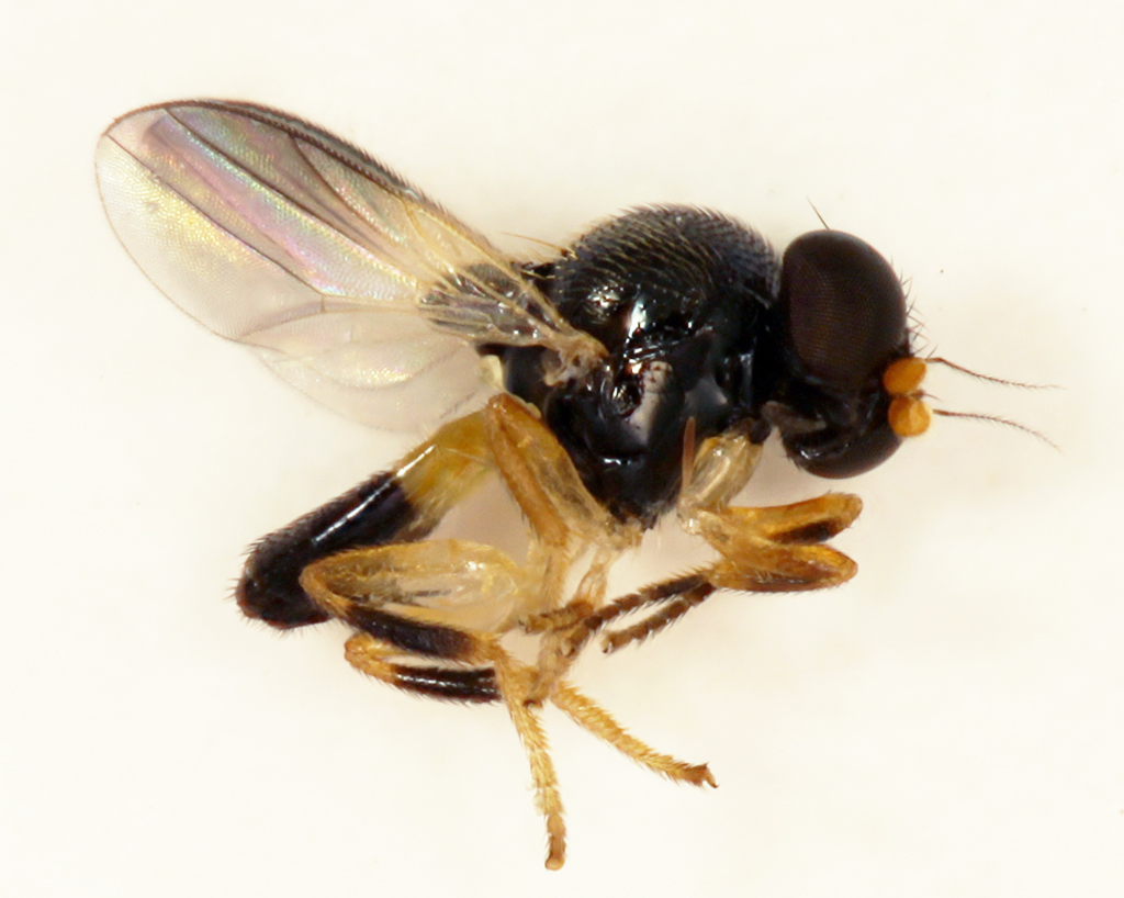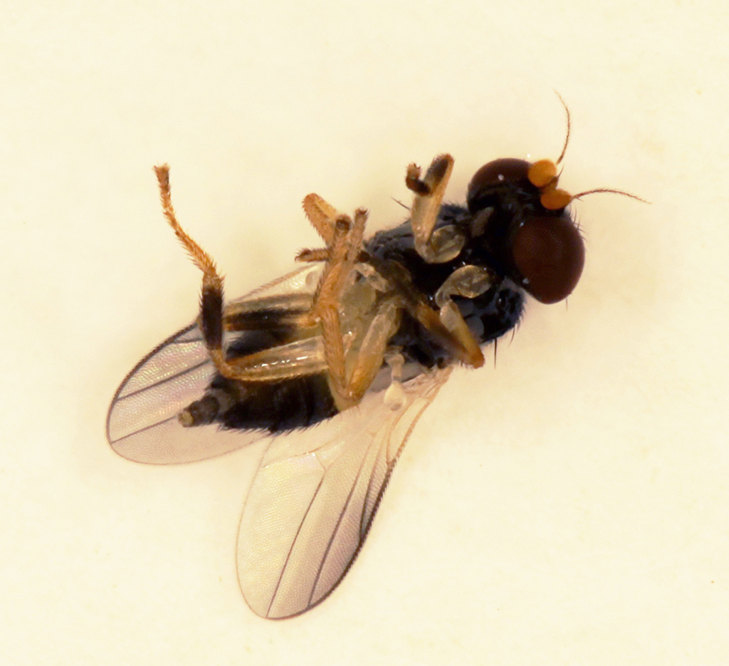 Finora ci sono state tre risposte. Theo Zeegers, esperto di Tachinidae, cioè la più grande famiglia di parassitoidi tra i ditteri, è stato il primo ma visto che questo non è certamente un Tachinidae ha solo dischiarato la propria incompetenza; altri due, di cui i profili mi sono meno noti, ma sono comunque molto attivi nel sito, hanno indicato Chloropidae, famiglia in cui sono già stati descritti casi di endoparassitismo di altri insetti, coleotteri in particolare. Per la venatura alare ai Chloropidae avevo pensato anch'io, però qui non si vede benissimo e ci sono almeno un altro paio di famiglie con venature abbastanza simili, quindi ho preferito passare la palla. Quanto a qualcuno interessato a studiare gli esemplari, ho appena chiesto indicazioni; io so che sul Manual of Paleartic Diptera il capitolo sui Chloropidae è stato curato da John W. Ismay e da Emilia P. Nartshuk. Quest'ultima, in particolare, ha al suo attivo una lista impressionante di pubblicazioni sulla famiglia di cui l'ultima (nota a Google) nel 2017, ma la prima è del 1955... A inizio degli anni 2000 lavorava allo Zoological Institute, Academy of Scince, St. Petersburg, Russia.