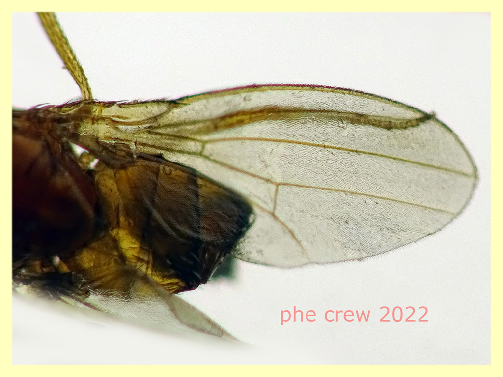 ...il 20.X.2022 ho ritirato delle trappole aeree con mix mela, banana e birra sempre ad Anzio ma in un altro prato;….di queste Drosophila sp. ne ho trovate una 30 ina. Il problema e': dato che c' erano alcuni maschi con spot neri sulle ali nel gruppetto (in foto solo una parte con solo un maschio) mi sono convinto essere tutte D. suzukii….ma poi...mi son detto...non e' che conviva anche con D. melanogaster ? Ho fotografato l' ovopositore dell' unica femmina che era messa meglio e anche l' ala….ma non sono riuscito a trovare sul web la foto dell' ovopositore della D. melanogaster...dunque non so come e' fatto, questo fotografato sembra proprio della D. suzukii....o no ?