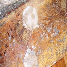 Il battiscopa rimosso non presenta all'interno segni di cunicoli o di erosioni, ma semplicemente come disciolto da un liquido che lo ha fatto putrefare.