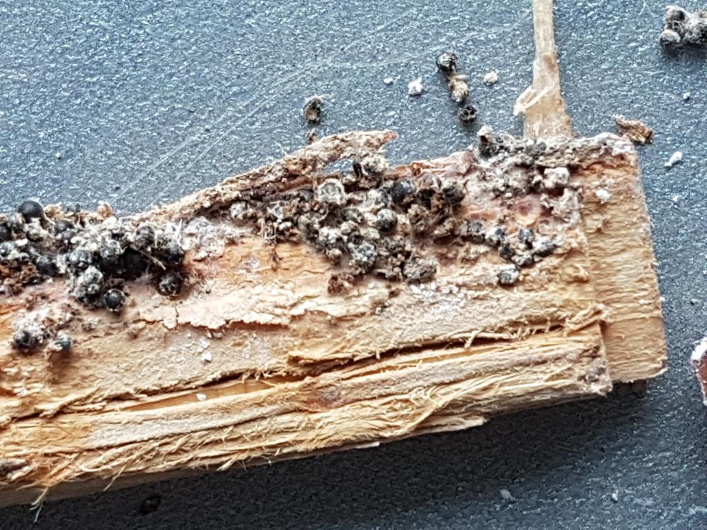 ecco come appare il legno. ho frugato all interno ma non ho trovato nessun esemplare. Ma che dimensione hanno esattamente le termiti operaie? Potrebbe trattarsi di larve di formiche? ho trovato un esemplare morto, anche lui ha la testa scura