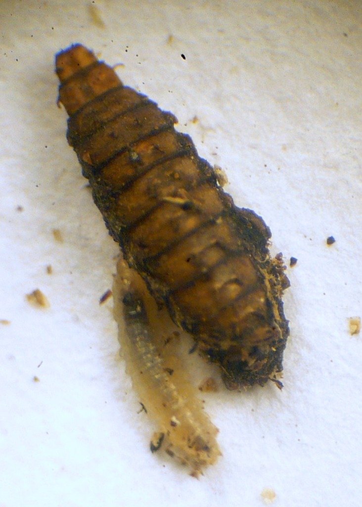 Nel nido dei crabro a parte una cimice e una pupa ho trovato solo queste larvette e non penso Vi interessino...