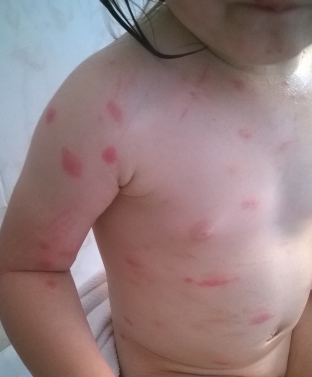 non è questione di "trasporto", è che tra il contatto e la reazione spesso passano alcune ore, anche 6-8...per questo ti dico di non "fissarti" sul concetto "la pungono nel letto", ma visto che hai già fatto la prima parte (bonifica ambientale a casa tua) vai avanti: mettile un repellente per insetti quando la porti fuori casa, controlla i mobili dai nonni, fai controllare cane e gatto! Per quel che riguarda la terapia ovviamente la migliore cura è combattere la causa, finchè non la scopri curi solo i sintomi e questo lo fai sia con l'antistaminico che con l'advantan (non usarne troppo, mescolalo con un'altra crema tipo floderm forte o policalm) Facci sapere