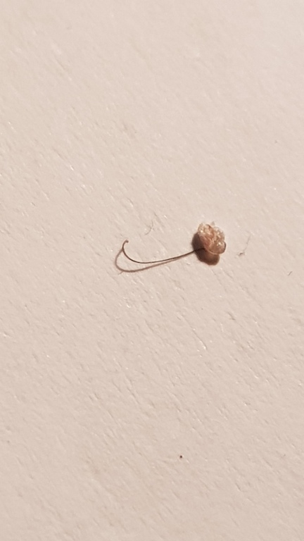 ringraziando per l'interesse mostrato finora per il mio problema sto ancora cercando di capire con cosa ho a che fare e si sta concretizzando ormai l'idea di chiamare una ditta specializzata perchè non so più come levarne le gambe..... vi allego comunque una foto dell'ultimo ritrovamento di questa larva che passeggiava sul mio collo appena dopo essermi alzato da letto.Ringraziandovi fin d'ora...