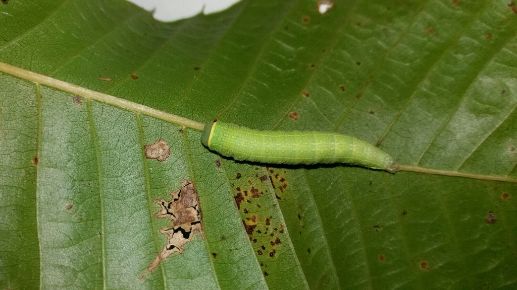 Mi sono trovato questa larva matura sulla maglia mentre passeggiavo in un castagneto. Dovrebbe trattarsi di una larva matura di Pseudoips prasinana (Linnaeus, 1758), confermate?
