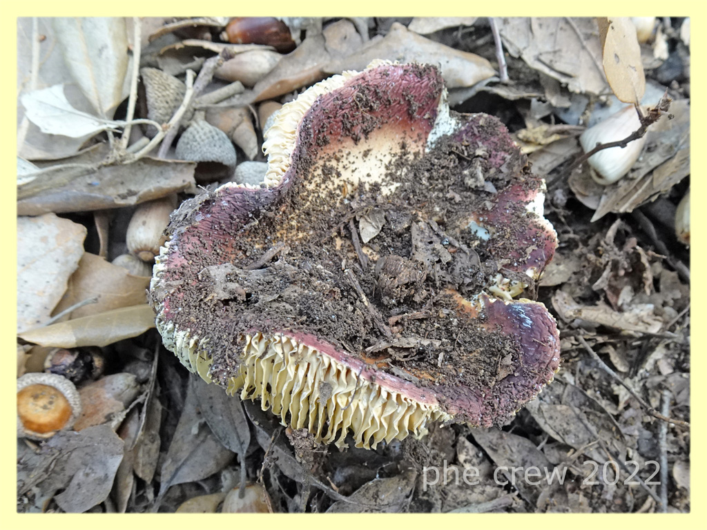 Sarò anche micologo patentato ma più che Russula sp. non posso dirti per ora, un genere perlopiù impossibile da foto; posso indagare cosa può essere sotto leccio e in primavera. In tarda estate-autunno compare Russula ochrospora :p (solo simile nella sua estrema variabilità cromatica) ma mai vista in primavera quando compare R. ilicis ma è un po' troppo viola (forse). Dimensioni? :hi: