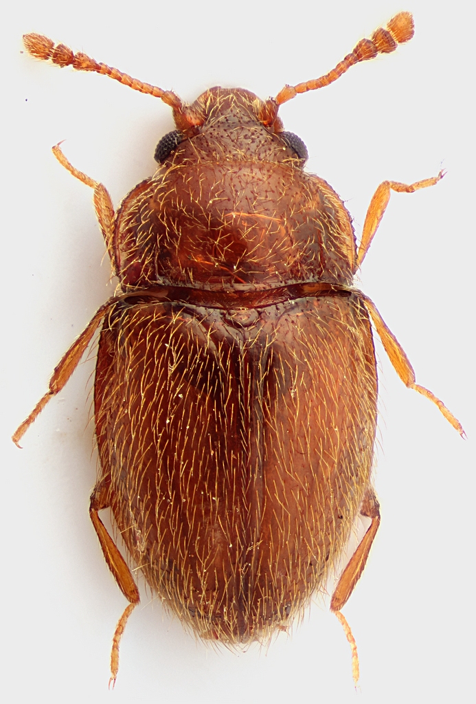 Non trovate che somigli molto anche al genere Henoticus (Chryptophagidae). Per essere generi di due famiglie diverse, sono veramente molto simili! Stesse dimensioni e colore, stesse antenne, stessa struttura generale, stessa scultura elitrale e peli, stesso scutello, denticolazione ai margini del pronoto ... Vedo differenze solo nella forma delle zampe e nella denticolazione del pronoto più o meno marcata, ma mi sembrano differenze specifiche, se non addirittura dimorfismo sessuale, più che differenze tra famiglie! Convergenza adattativa o qualcosa non va? (Il sito russo di solito è affidabile, ma non si sa mai). |