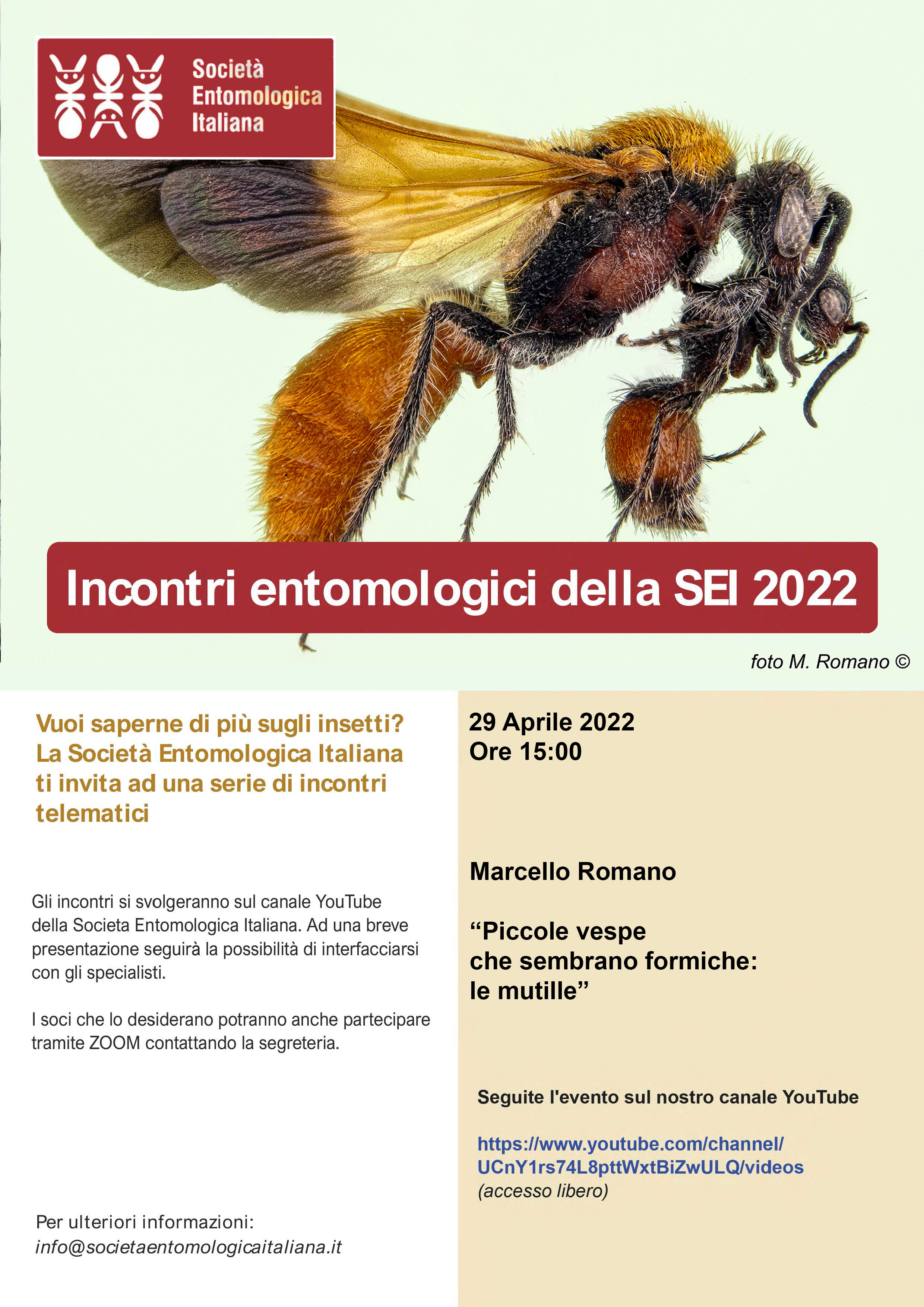 Dopo la pausa estiva, riprendono da questo venerdì gli incontri entomologici on-line organizzati dalla Società Entomologica Italiana.