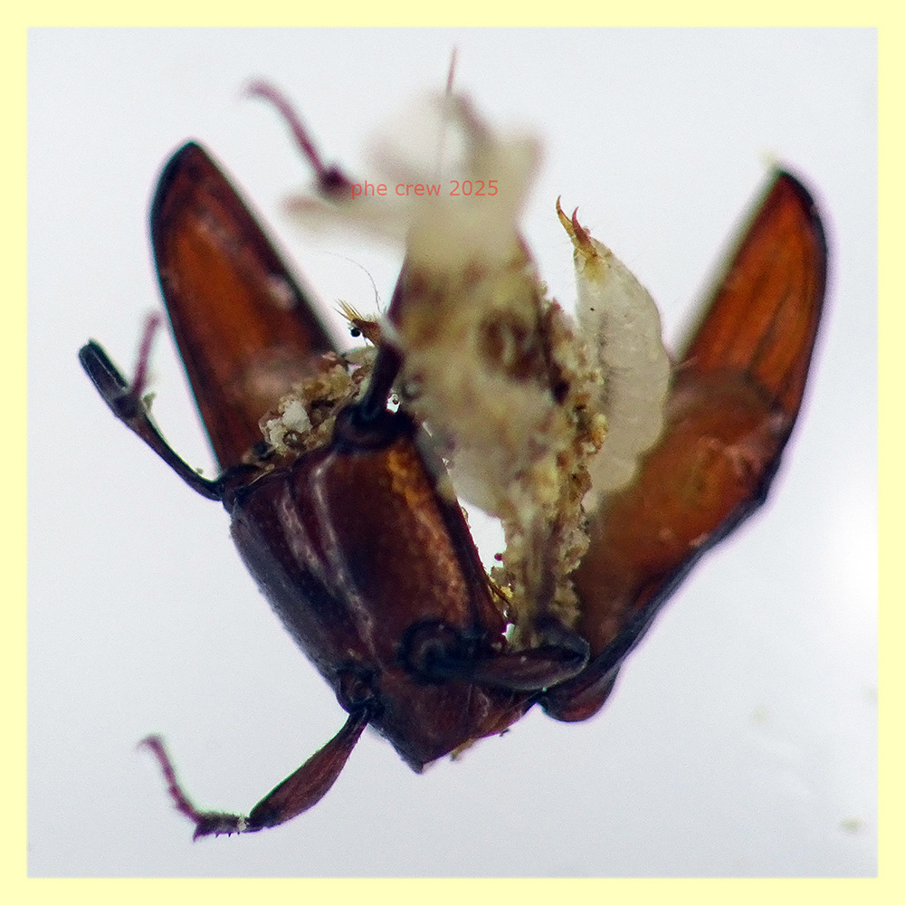 soken ha scritto: ....guardando poi attentamente i rimasugli ....trovo una bella larva di Cryptolestes su uno degli Ogmoderes che ormai ha del tutto svuotato. Dunque era una femminuccia e anche gravida......ma io ne trovai uno solo di esemplare quel giorno ! :? Non sara' mica una di quelle bestie che non ha bisogno del maschio per riprodursi ?...oppure si e' accoppiata da tempo e il maschio lo trovai stecchito giorni prima di lei o anche dopo....non ricordo, sono talmente comuni che quando li trovo li lascio liberi o se morti li butto. Sta di certo che quel giorno il Cryptolestes lo trovai solo in un esemplare. Se qualcuno avesse esperienza con l' accoppiamento dei Cryptolestes mi faccia sapere, cosi' da dissipare la mia ipotesi...o di confermarla. ...ecco la larva del Cryptolestes fotografata in stile "ESCI DA QUESTO CORPO !" :lol1: :lol1: Cryptolestes sp. - (28).JPG Cryptolestes sp. - (49).JPG Cryptolestes sp. - (57).JPG Cryptolestes sp. - (60).JPG Solo ora leggo il tuo post, dopo che ti ho scritto un mp. Sulla specie occorre vedere il materiale al binoculare, se sono comuni tienimene un po' da parte, se puoi anche qualcuno vivo. Tieni anche i vari pezzi rotti degli Ogmoderes e la larva. Le femmine non sono partenogenetiche (o almeno non sembrano esserlo), ad ogni modo i Cryptolestes (e Leptophloeus) sono predatori e micofagi, ma non escludo, come sembra, anche saprofagi. Non si sa moltissimo sulla biologia, quindi le tue osservazione sono interessanti. Alcune specie, anche autoctone, attaccano le derrate, ma si trovano anche in natura. |