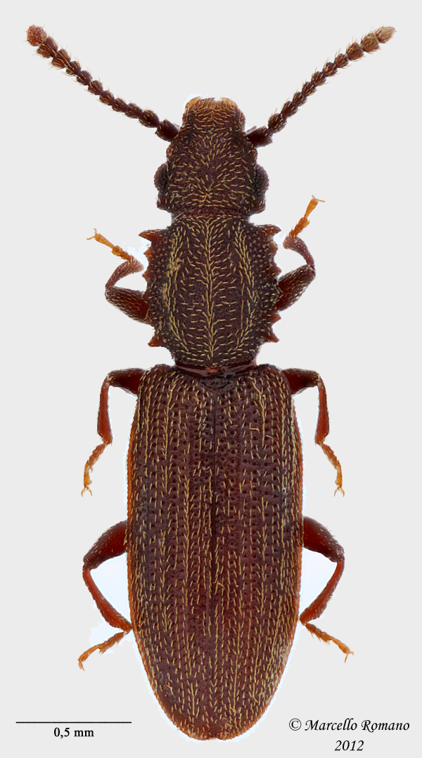 | Oryzaephilus surinamensis (Linnaeus, 1758) - Silvanidae https://www.entomologiitaliani.net/public/forum/phpbb3/viewtopic.php?f=502&t=32392 |