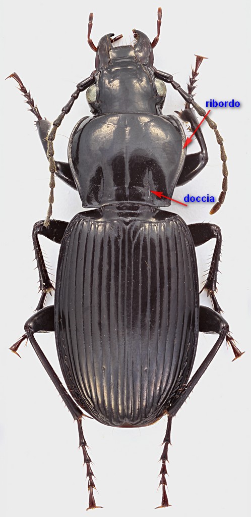 quanto sopra vale sostanzialmente per la maggioranza dei carabidi (ai quali per la verità sostanzialmente si fermano le mie competenze coleotterologiche :oops: ); in altri gruppi, compresi alcuni carabidi, può non esservi una doccia laterale distinta, mentre può essere presente un ribordo laterale più o meno definito ed esteso