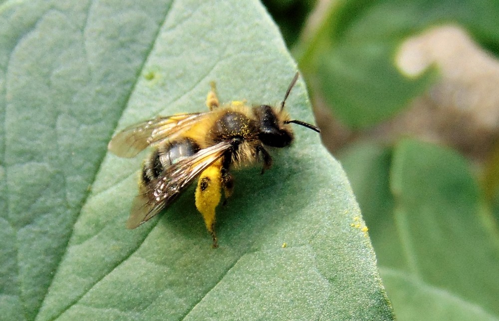 Sembra una specie di vespa ma molto più tozza e carica di polline, come si chiama?