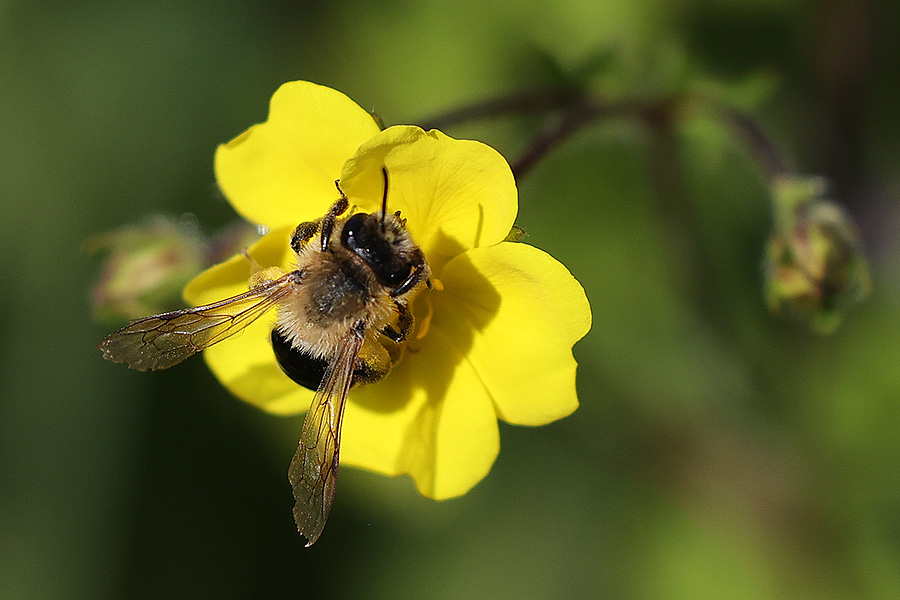 Ape solitaria trovata su fiore di Potentilla pedata in zona collinare calanchiva.