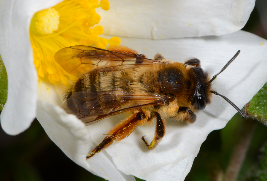 Piccola, sui 7 mm, dormiva (mi è parso) in un fiore di cisto.
