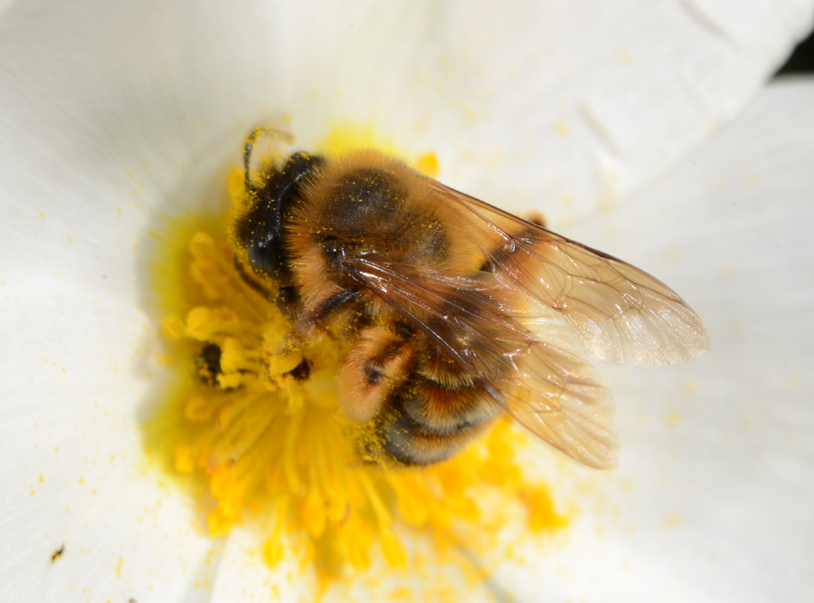 Questo è un esemplare che avev identificato come Andrena nigroaenea, ma dopo l'identificazione da parte di Pietro di quella che credevo un Osmia come A. nigroaenea (vedi qui), non ne sono più sicuro, mi sembrano diverse.