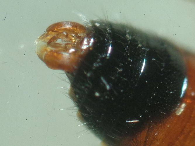 Grazie, mi ero scordato di averla scaricata: trovo che S. monilicornis (Kirby, 1802) sia sovrapponibile in foto, anche perchè scultura dei primi terga, gonocoxite e gonostilo mi paiono identici (ed il resto del corpo) a questo viewtopic.php?f=547&t=103300&hilit=Sphecodes+monilicornis ; del resto, le alternative della chiave (a mio modesto avviso!) non mi soddisfano tutte per arrivare a S. puncticeps; in particolare: - tergite 1 con finissimi punti molto molto radi, apice dei seguenti lisci, lucidi; - penultimo antennomero praticamente equilungo (se vogliamo anche un filino trasverso) ; - gonostilo con brevi e sparsi peluzzi. Gastro più nero cupo all'apice ma penso che la cosa non sia influente. Integro con alcune foto aggiuntive. ![]()