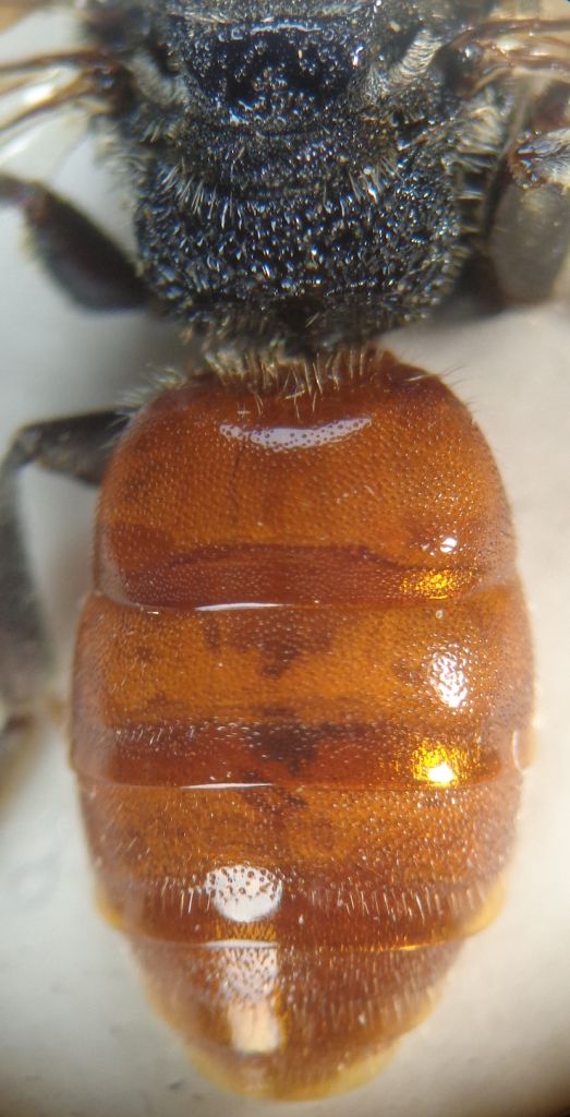 Giusto per imparare :) guardando l'esemplare mi sarei fatto trarre in inganno (ed avrei quindi sbagliato) dall'angolo formato dalla vena cubitale e da quella anale dell'ala posteriore che qui è abbastanza retto (si vede bene nell'ala destra) mentre in Sphecodes albilabris dovrebbe essere più acuto (sempre se non erro) e quindi mi sarei orientato più su uno Sphecodes rubicundus che però non ha mesoscuto e T1 così fortemente punteggiati e la forma delle antenne è diversa, entrambi fattori che fanno pendere l'ago della bilancia a favore di Sphecodes albilabris... mi aiuteresti a capire dove ho sbagliato, per favore? :)