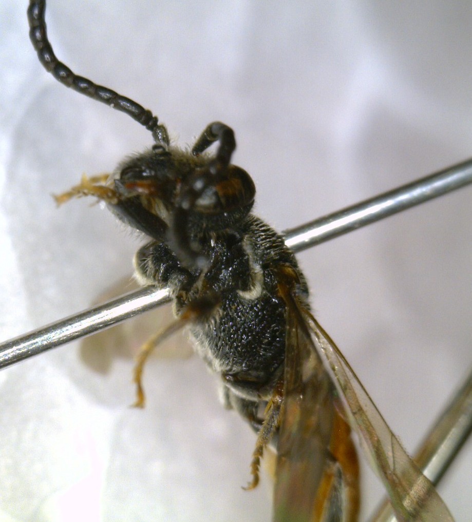È sempre un'ape cleptoparassita, ma del genere Sphecodes, quindi famiglia Halictidae QUA c'è una chiave per le specie dell'Europa centrale, ma che copre praticamente tutte le specie italiane, escludendone un paio se ricordo bene. Essendo un maschio ti consiglio di estrarre la capsula genitale, negli Sphecodes si fa prima così che con le chiavi. |