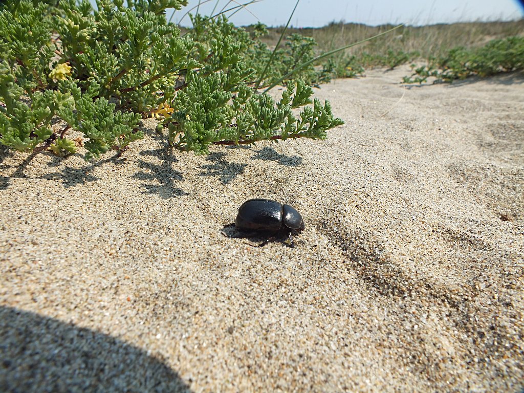Purtroppo il percorso del fiume è cambiato nel corso dell'ultimo paio d'anni, e la zona che ricordavo, una spiaggia con diversi tronchi spiaggiati incuneata tra il mare, la foce dell'Arrone ed un'ansa morta del fiume parallela alla costa, è sparita, poichè il fiume è tornato sul vecchio percorso abbandonato. La mia intenzione era di dare un'occhiata per vedere se trovavo anche qui tracce di Calicnemis latreillii, ovvero, di giorno, qualche esemplare morto durante la notte o semplici frammenti. E già che c'ero, provare a mettere una trappola per i necrofori in un ambiente diverso dai soliti. Non si sa mai.