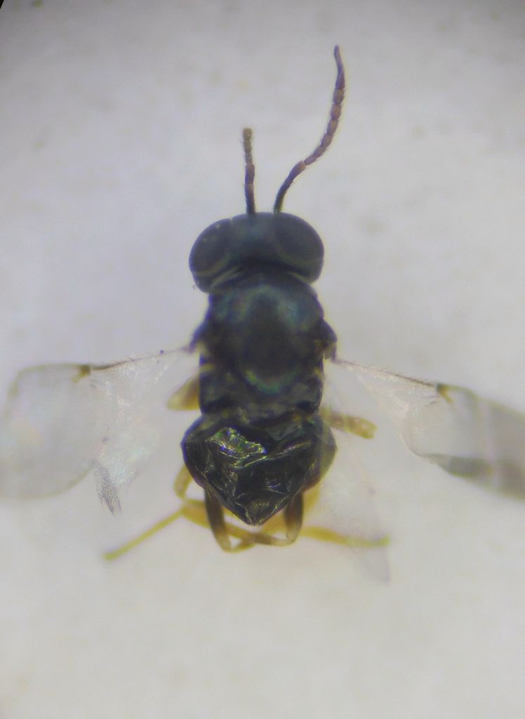 Invoco l'aiuto di Adriano :) Si può determinare questo presunto Ooencyrtus uscito da ovature di Halyomorpha? Mi sarebbe di aiuto anche poter escludere alcune specie, ad esempio l'O. telenomicida, che se non sbaglio ha la parte basale dell'addome giallastra. Una nota del CREA segnala anche O. gonoceri come parassitoide autoctono di Halyomorpha. C'è anche O. pityocampae che ha Pentatomidae segnalati come ospiti. Non ho trovato informazioni su altre specie presenti in Italia.