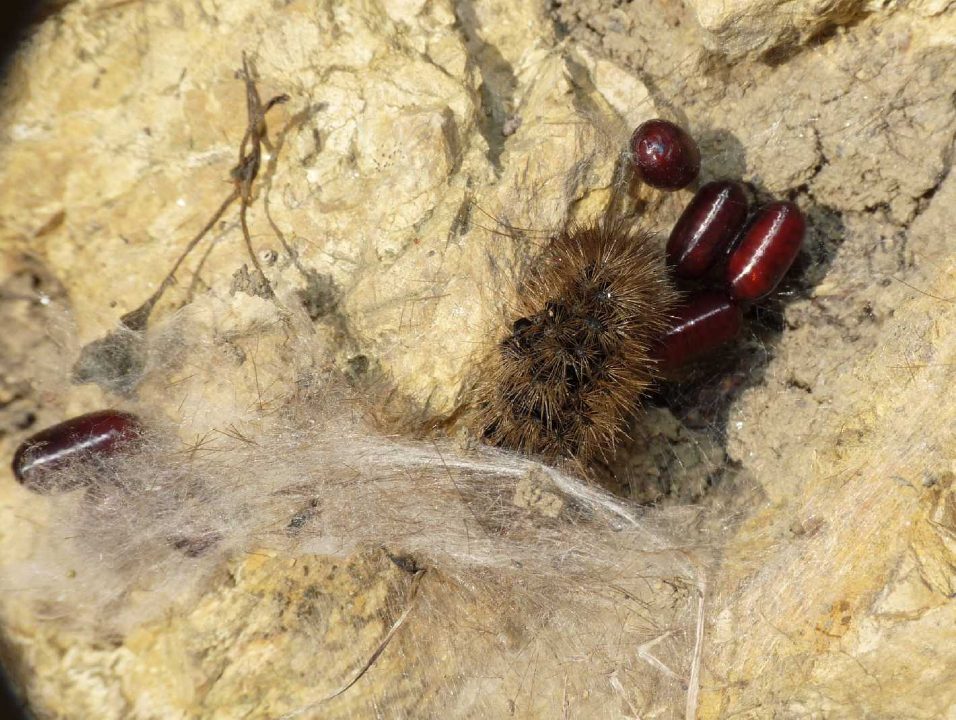 Le dimensioni sono sui 2-3mm, come si evince dal confronto con i pupari e col bruco.