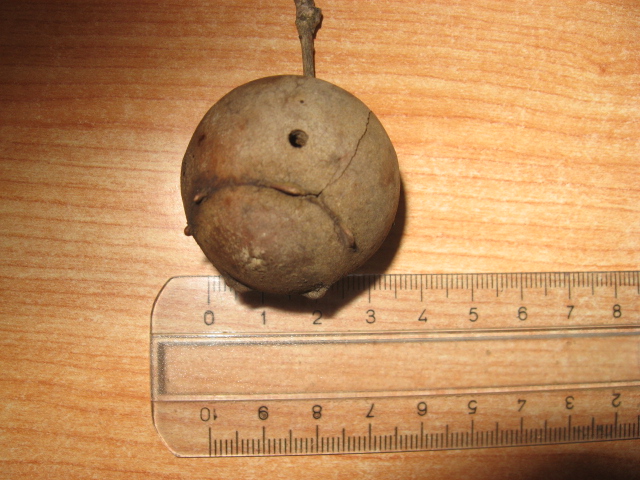 Sulla strada che conduce dal paese di Cesarò al lago d' Ancipa, si entra in un fitto querceto misto; ai piedi di una Quercus dalechampii (presente, in Italia, solo in Sicilia, Calabria e Sardegna e poche altre zone), forse un ibrido fra roverella e rovere, ho trovato una galla ormai "usata". Si riesce a capire a quale specie appartenga?