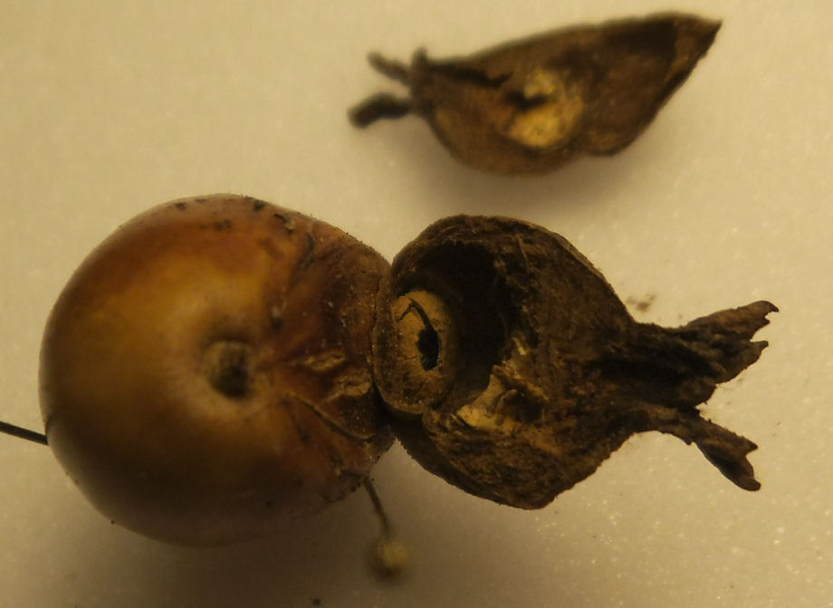 ottimo lavoro, almeno abbiamo certezza che si tratta di una galla e per peculiarità della sezione posso affermare che si tratta di Andricus quercuscalicis con un ragionevole margine di certezza. Allego una mia vecchia foto che mostra la sezione di questa comune specie Cinipina