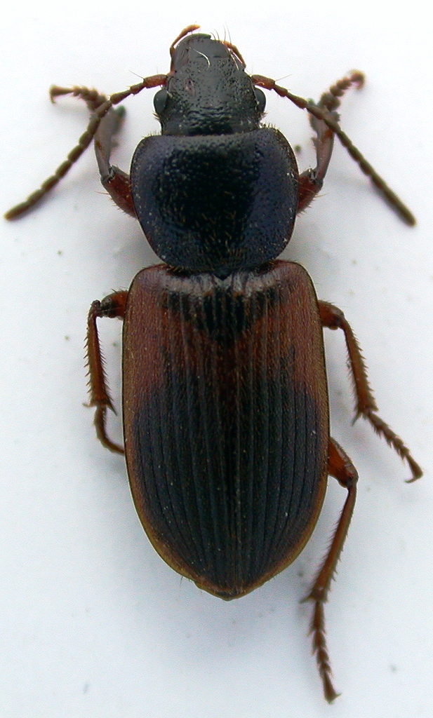 Brachinus sp. (8mm, addome rossiccio, fila di lunghe e rade setole al margine elitrale)