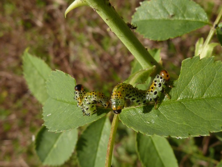 Martedì scorso, 5 giugno, mi sono recato a Cameri(NO) in compagnia degli amici "imenotterologi" Mirko e sua madre Claudia, per un piacevole passeggiata entomologica. Il meteo si prospetta, sin da subito, favorevole alle nostre rischieste, regalandoci una splendida giornata di sole caldo. Una volta arrivati, la vista è subito una delle migliori: Il fiume Ticino: Pian piano, proseguiamo per quello che sarà il nostro sentiero entomologico, affiancando il fiume: Il primo incontro è di una Opsilia coerulescens (Scopoli, 1763), rinvenuta su questa pianta di Echium sp.(presuppongo vulgaris), che ritroveremo anche più avanti, affiancando il sentiero: Non molti metri dopo, è subito festa per Mirko e Claudia: un bel formicaio di Formica cinerea! Qui li vediamo all'opera: Mentre proseguiamo, non possiamo non notare con estremo interesse lo svariato numero di lepidotteri che "camminano" insieme a noi: un vero spettacolo ai nostri occhi. Mirko che ne osserva uno: Mentre qui, un particolare comportamento, mai osservato, da parte di alcuni di quest'ultimi: in più occasioni, abbiamo osservato il posarsi di più individui su feci animali. Qualche spiegazione Proseguendo per il sentiero, Claudia nota una particolare postazione che potrebbe risultarsi interessante per qualche Chrysididae. Posizioniamo infatti un piattino giallo, con all'interno la classica acqua e sapone, per poi ricontrollarlo a fine giornata: Vi troveremo infatti quelli che dovrebbero essere 3 Chrysis germari Wesmael, 1839 e 1 Chrysura sp.. Svariati gli incontri successivi, con l'osservazione di svariate specie: Larva di lepidottero, probabilmente una Cucullia verbasci (Linnaeus, 1758), trovata anche poi con Michele a Montecchio Emilia: Larve di imenotteri ![]() Ed alcuni chrysomelidae, in cui sugli stessi fuori abbiamo trovato Trichius fasciatus (Linnaeus, 1758) e diversi bupresidae, che posteremo più avanti: Un Rhynocoris sp. intento ad aspettare la sua preda: Ovviamente, non si poteva non apprezzare la ricca vegetazione locale, eccone qui due esempi: Una rosa canina: Uno "Julodis" locale, di colore rosso: Più avanti, sulla destra, troviamo una lunga radura con piante molto basse e alberi tagliati, tenuta tale quasi sicuramente per il passaggio di cavi ad alta tensione. In questo ambiente, l'amico mirmecologo Mirko ha potuto apprezzare svariati incontri con Prenolepis sp., Pheidole pallidula e Camponotus vagus. Qui vicino, una splendida zona acquitrinosa, in cui io mi sono lasciato scappare un'Agapanthia, a prima vista e di sfuggita pareva una villosoviridescens, ma non potrò mai saperlo con sicurezza. Stanchi ormai dalla lunga e calda mattinata, ci incamminiamo per la strada di ritorno. Ci concediamo una foto rituale di gruppo Da sinistra verso destra: Mirko, Claudia ed Io. E per finire, mi concedo una foto a questo splendido apide, con polline raccolto di colore rosa. Arrivederci a tutti e...alla prossima!