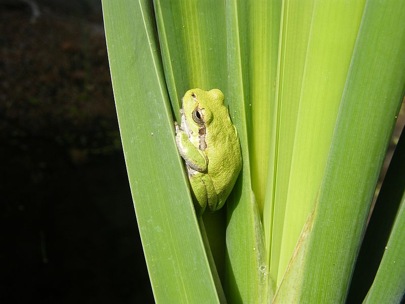 In una piccola pozza sulla sponda del rio, mi chino a raccogliere un Myriophyllum (forse Myriophyllum spicatum) per il mio acquario e scorgo una Hyla sarda.