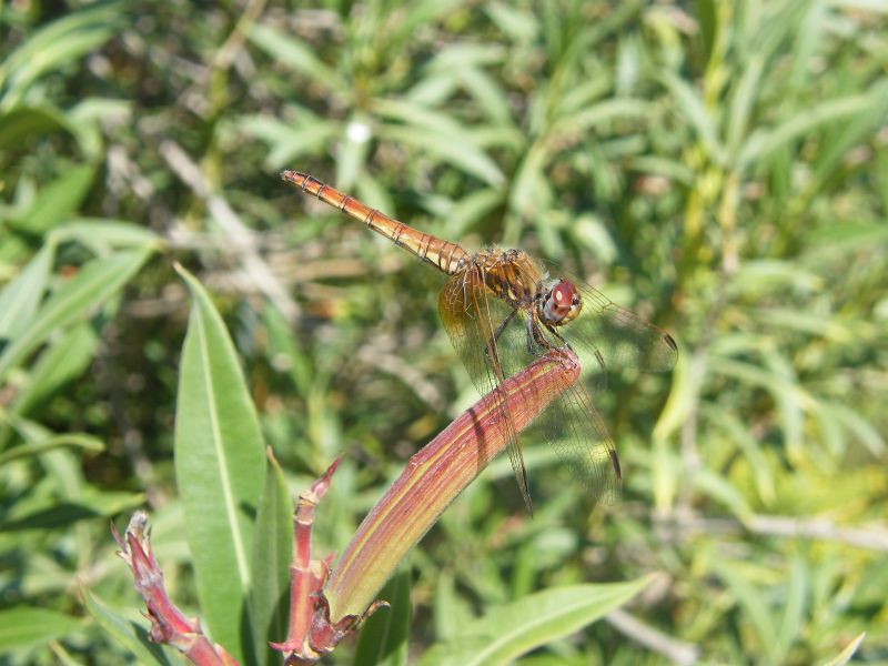 su un lato della sponda, nel fitto degli oleandri, erano comunissime le Lestes viridis (Vander Linden 1825): un maschio...