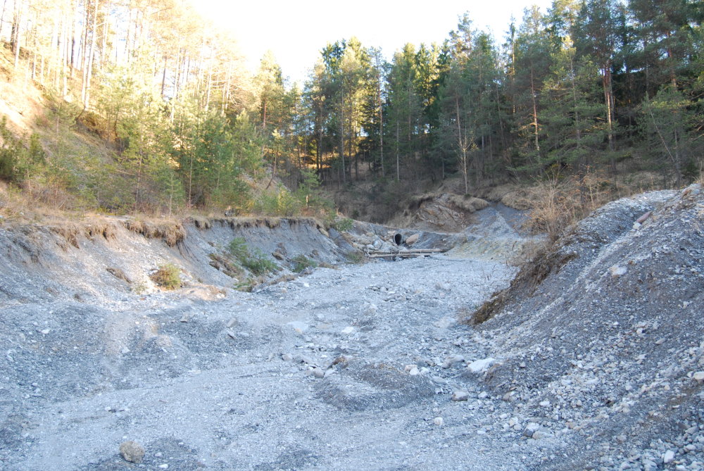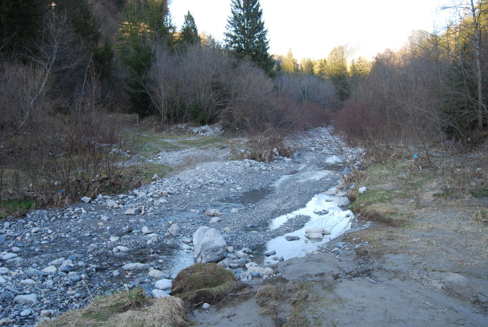 grazie mille Augusto!!. Bè, la cosa è molto interessante  . In effetti a pasqua ho trovato praticamente solo Bembidion, probabilente quelli che svernano e vengono fuori presto, fai conto che lì se alla notte c'è sereno va ancora a -4/-5, ma non ho provato a vagliare il terreno dei boschi, la prossima volta lo faccio di sicuro, e quando vado in estate cerco l'Alpiodites ravizzai. Se ne trovo qualcuno ovviamente una coppia è per te, sai se i blocchi devono essere presi togliendo zolle dalle rive o dalle sponde, o già staccati?  . Adesso metto un altro po' di ambienti, questo è il secondo punto dove ho trovato più Bembidion, e il primo era sempre uno sbarramento con dei sassi sopra a montagnette di ghiaia, ho visto che le specie di Bembidion che trovavo io sopra a terreno argilloso non c'erano andando avanti di 100m si trovava un posto con delle piazzole sabbiose dove si accumulavano oltre che nei "cespuglieti" di salici dei detriti, soprattutto argilla e detriti vegetali, che mi è venuta voglia di vagliarli più volte, ma non l'ho mai fatto  e anche, lungo la strada delle "piazzette" aride: lungo il fiume poi si incontrava anche un affluente più grosso del primo, che credo venisse dalla val di Varro