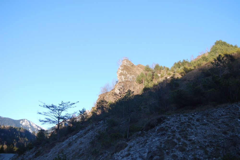 ciao Maurizio, l'acqua c'è solo quando c'è il disgelo o dopo gli acquazzoni, adesso solo un piccolo fiumiciattolo esattamente di fianco a questo aveva l'acqua, ma è arido anche in estate, anzi, di più, soprattuto l'ambiente che mostrerò adesso. è un ambiente infatti, che mi ricorda i calanchi, che si trova nel versante, mi pare, esposto a sud, dove c'è una vegetazione completamente diversa da quella dell'altro versante, che invece non è arido, con pini sparsi e cespugli, ma con un bosco di abeti molto umido e adesso una veduta generale del versante xerico come si vede già dalla veduta generale ci sono molti cespugli e pochi alberi, e spessso i cespuglietti lungo il sentiero formano come delle spondine alcuni pini di diversa grandezza e più o meno secchi, e quindi vulnerabili all'attacco di specie xylophaghe, uno grande uno più piccolo uno completamente secco dopo, si vedeva una montagna davanti alla quale c'era un ambiente umido, e dietro si ritornava a uno xerico il dietro montagna più umido, anche se dalla foto purtroppo non si vede benissimo uno che ho ispezionato trovando nei rametti diverse gallerie di xylophagi, così per il tipo di legno e la grandezza dei rametti ispezionati l'ho soprannominato pino Pogonocherus ma nel versante subito prima della montagna c'erano diversi cespugli di pino mugo, credo, che formavano un mancchia molto particolare |