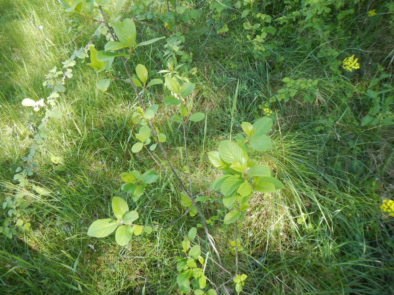 Giovane pianta di Rhamnus frangula (=Frangula alnus) con le sue foglie caratteristiche. Tra qualche settimana, con un po di fortuna, spero di trovare qualche Oberea pedemontana su quei cespugli.