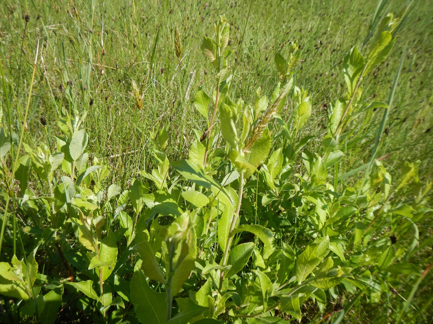 Un fenomeno descritto da Pezzi (1996) e che ho potuto osservare anche oggi è la presenza di giovanissimi esemplari di Salix purpurea in mezzo al prato e che ogni anno vengono puntualmente sfalciati.
