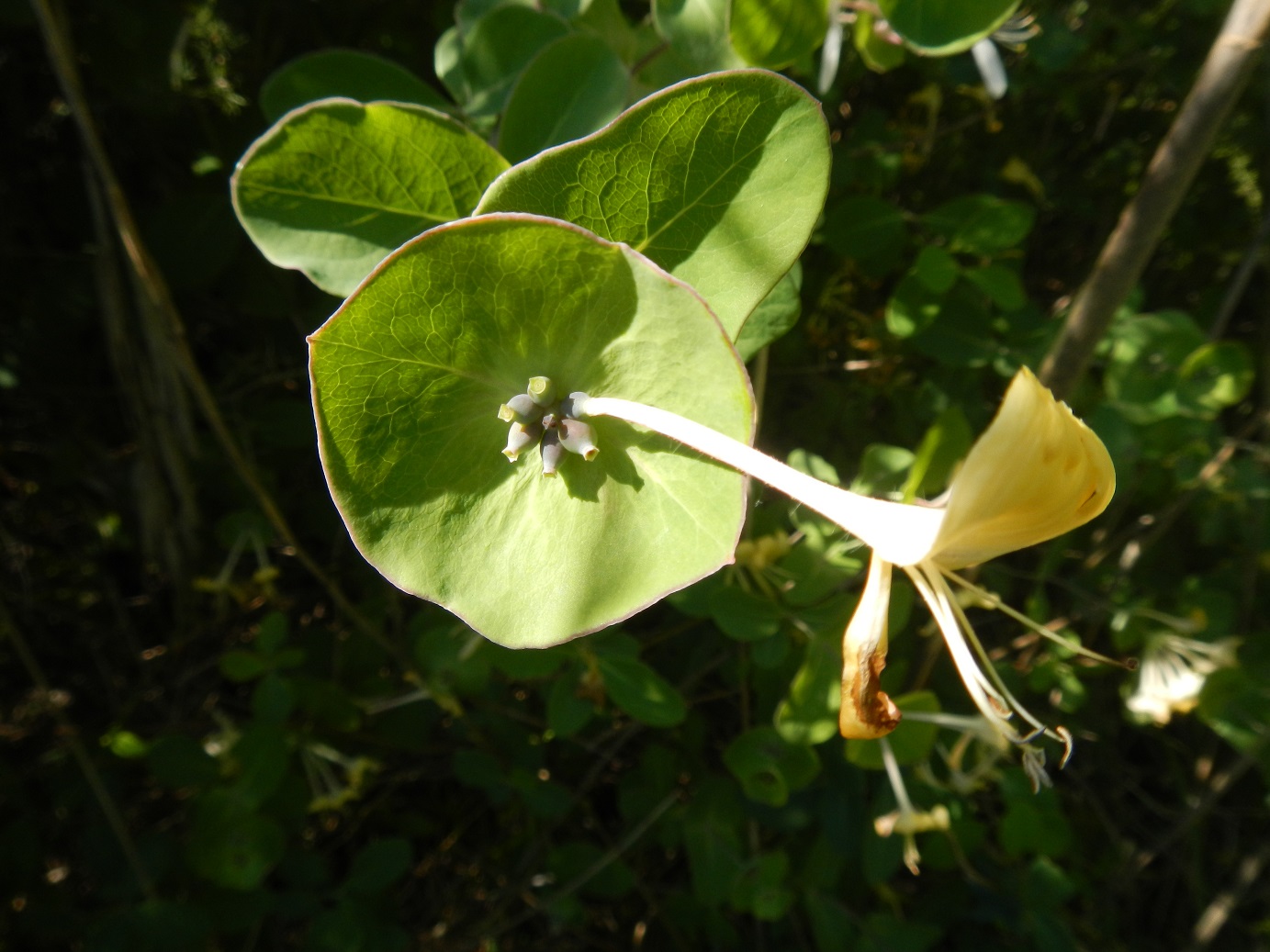 Abbondano tra gli alberi i caprifogli con le loro tipiche foglie.