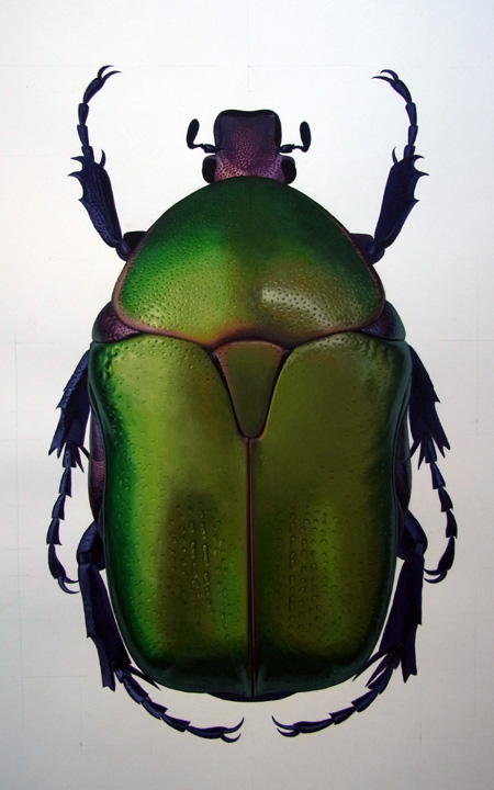 Potosia cuprea, Acrilico su carta