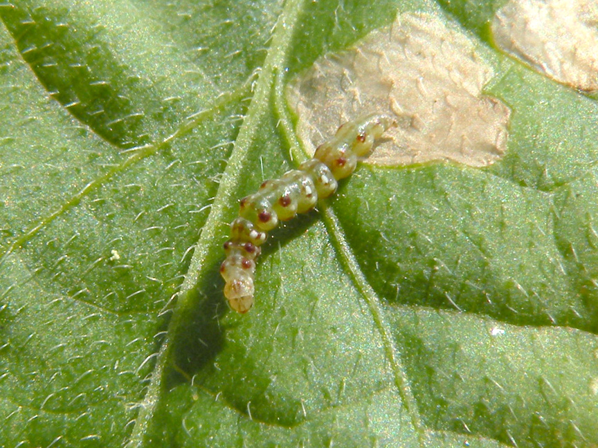 Si tratta di un minatore fogliare molto vorace, che ho rilevato sulla pianta di Ipomea purpurea. Lo sfarfallamento è avvenuto in questi giorni. Credo che l'identificazione sia corretta, ma la sottopongo comunque al vostro giudizio.