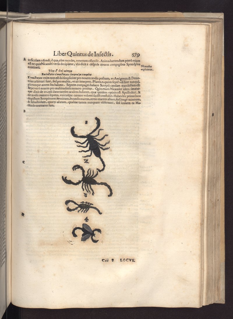 * - E.Capanna - Il Tempo e la Verità - 2006 Mi pare ci sia un po' di sciovinismo nelle affermazioni di Capanna, lo stesso grande Linneo poneva ancora "Scorpio" tra gli insetti con le ali (se non ricordo male tra gli Emitteri) nella sua prima edizione del Systema naturae. Non mi sembra quindi che l'influenza di Aldrovandi sia di molto maggiore (se è stata maggiore) a quella di Moufet. E poi questa pagina dello studioso bolognese non raffigura proprio (al numero 4) lo scorpione con le ali? Roberto