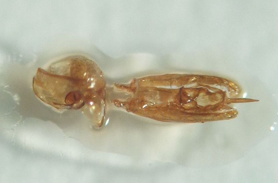 Questo gelechiide (ap. alare 10,5 mm) mi sa assomigliare alquanto a Iwaruna biguttella (Duponchel, 1843) più che a una Aproaerema sp.. Magari qualcuno mi conforta? Non ho schiacciato l'apparato lasciandolo in "3D", giacchè i confronti disponibili non riesco a leggerli bene quando schiacciati sotto un vetrino. In particolare le antenne, le valve (e... l'uncus (?) molto acuto) mi indirizzano nel pensiero. Leg. I.Bendazzi.