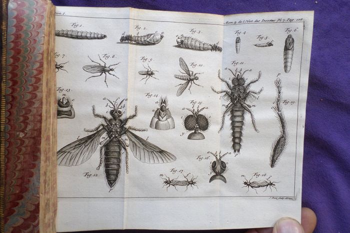 Mémoires pour servir à l'histoire des insectes (1734 - 1742) di René-Antoine de Réaumur, una raccolta di sei volumi. Il signor de Rèaumur affidò ad una donna l'esecuzione dei disegni di tutti i sei volumi, ma affermò che il pudore di lei gli impediva di pubblicarne il nome.