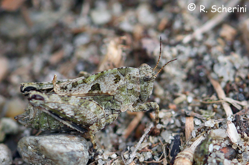 Ciao. I Tetrgidi sono molto complessi da identificare, persino quando si hanno gli esemplari in mano. Queste però mi sembrano tutte Paratettix meridionalis, una specie molto comune, soprattutto vicino alle sponde sassose o ghiaiose dei fiumi.