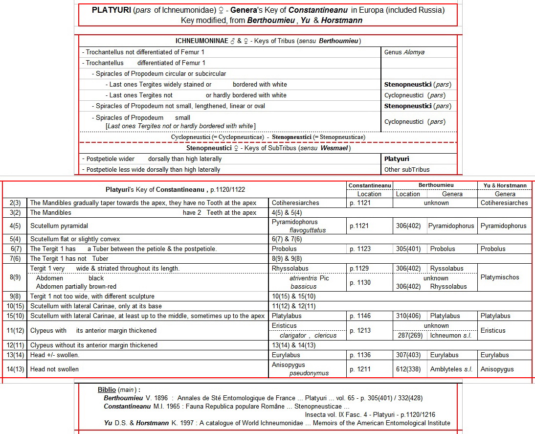 PLATYURI (pars of Ichneumonidae) female - Genera's Key of Constantineanu in Europa (included Russia) , Key modified, from Berthoumieu, Yu & Horstmann - Ichneumonidae - Amblypygi s.l. (pars)