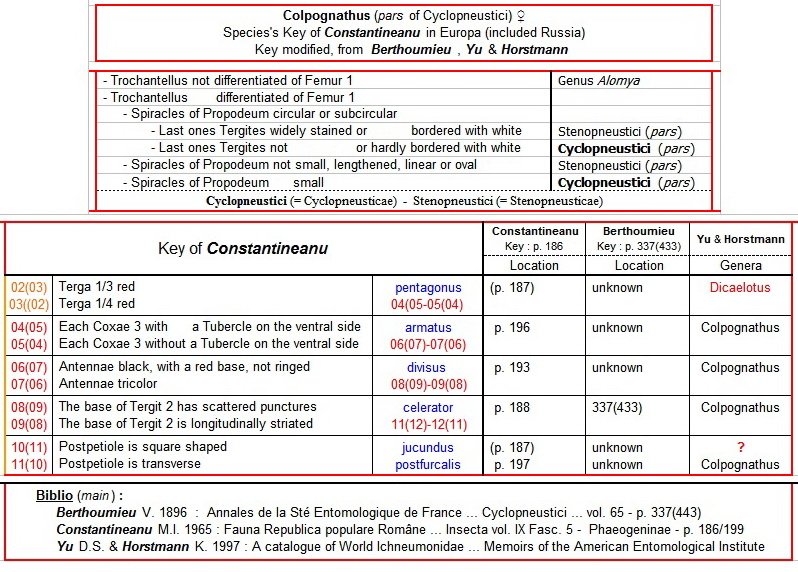 Colpognathus (pars of Cyclopneustici) female - Species's Key of Constantineanu in Europa (included Russia) - Key modified, from Berthoumieu , Yu & Horstmann - Ichneumonidae