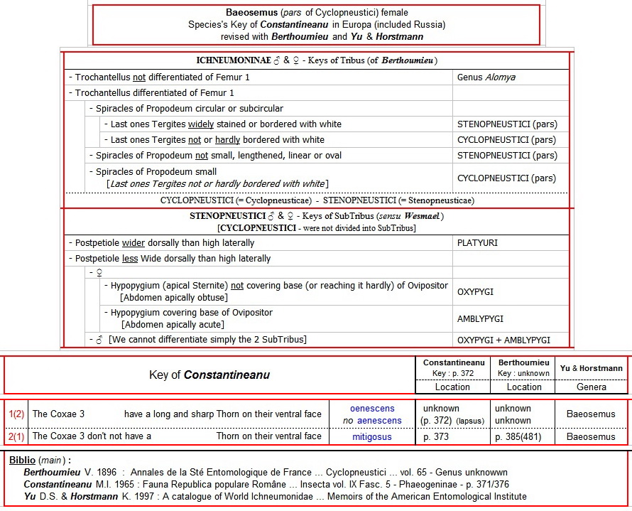Baeosemus (pars of Cyclopneustici) female - Species's Key of Constantineanu in Europa (included Russia), revised with Berthoumieu and Yu & Horstmann - Ichneumonidae